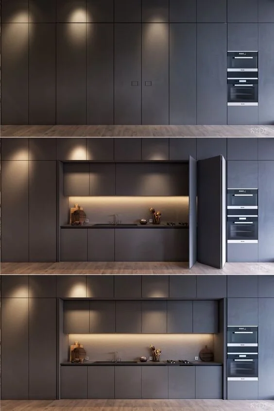 For those living in small spaces or working from home, every room needs to be multi-functional. Being able to convert your kitchen into a clutter-free office or gallery can be invaluable when space is at a premium, so why not build the entire kitchen to be closed up when you’re not using it? While this can be done with the help of a good carpenter, there are more technological solutions that can move a storage wall to close or reveal your kitchen with the wave of a hand or a tap on your smartphone!