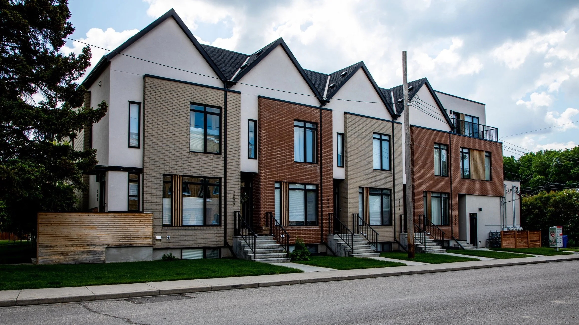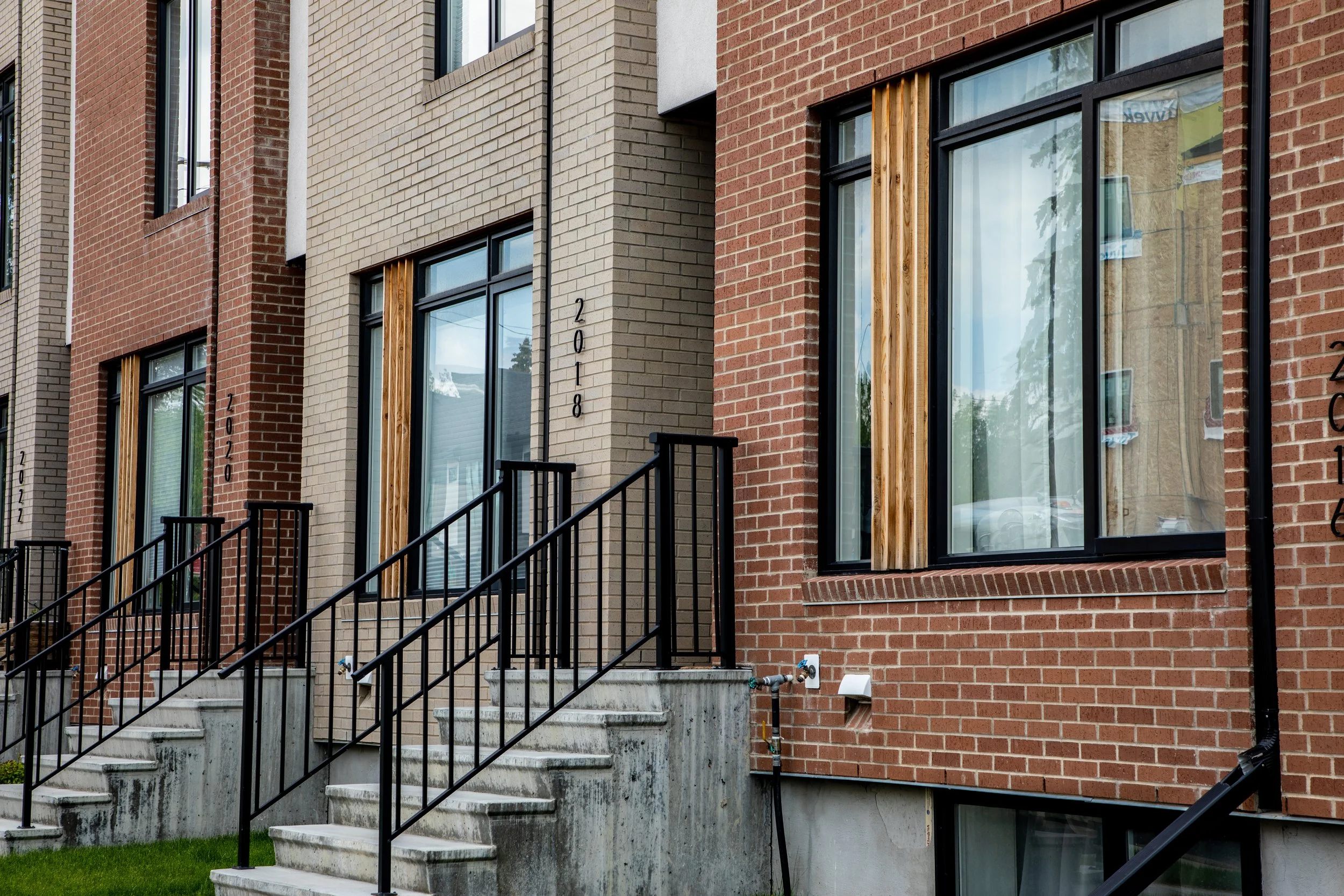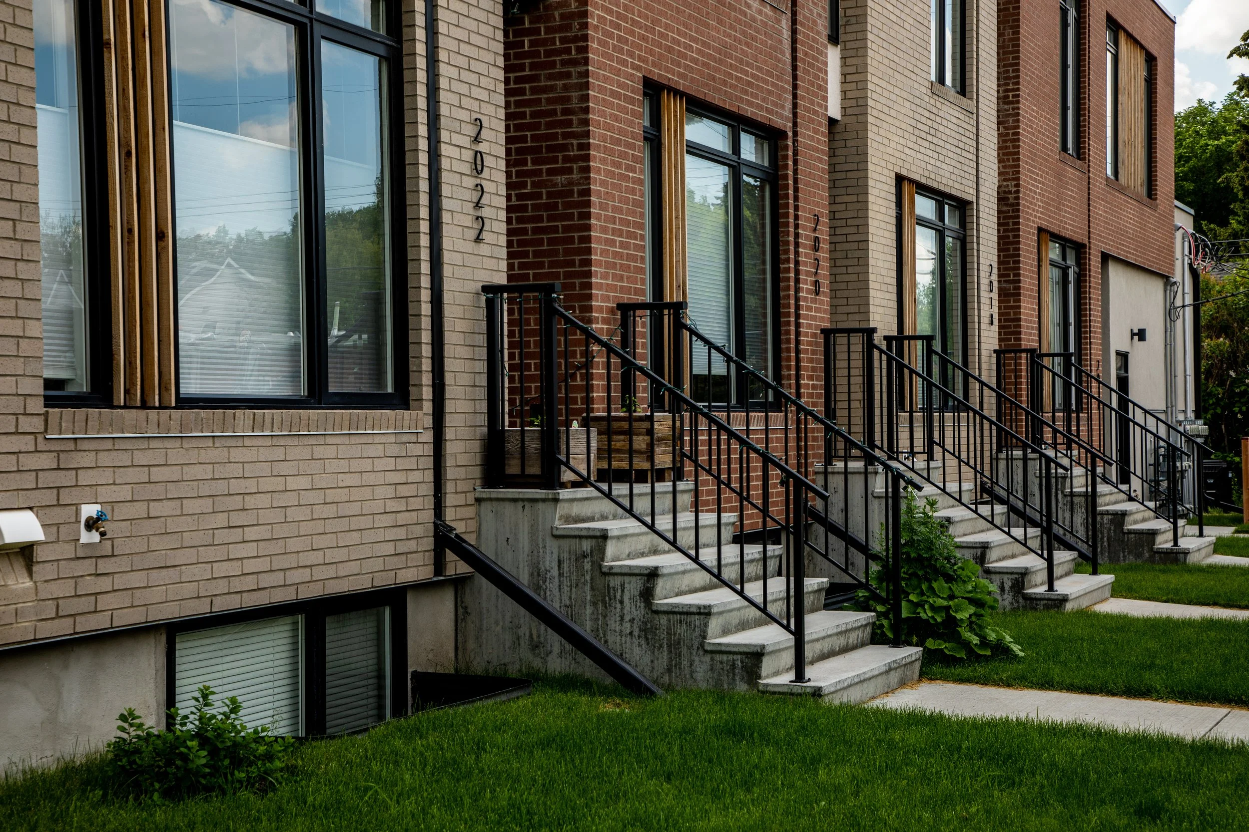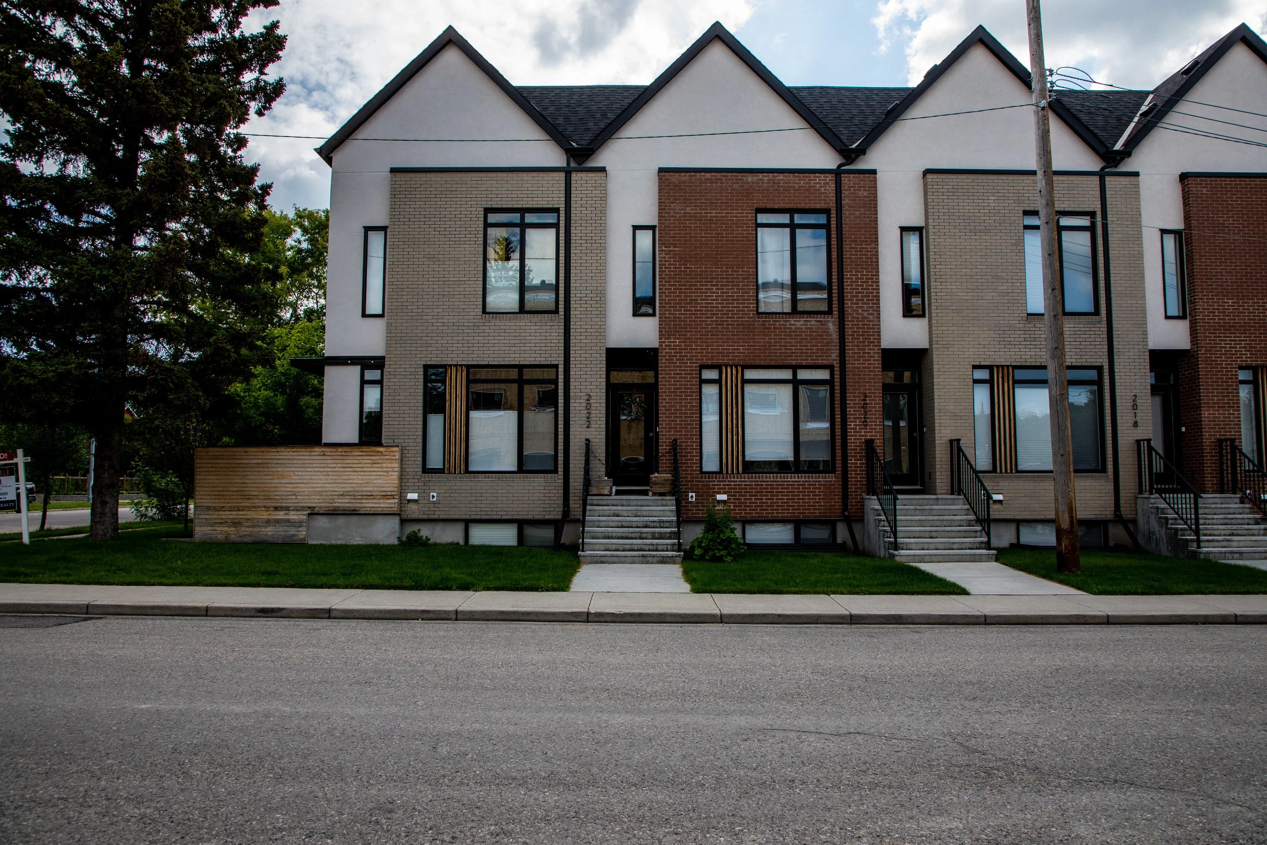 Winner of the BILD Calgary Region SAM Award for Best New Design Villa/Duplex/Townhome 1200 sq.ft. and over, this eight-unit rowhouse explores new medium-density configurations to seamlessly integrate into the northwest community of Mount Pleasant. This 100’ x 120’ corner lot was developed by RNDSQR and built by BMP Construction Management in 2017.